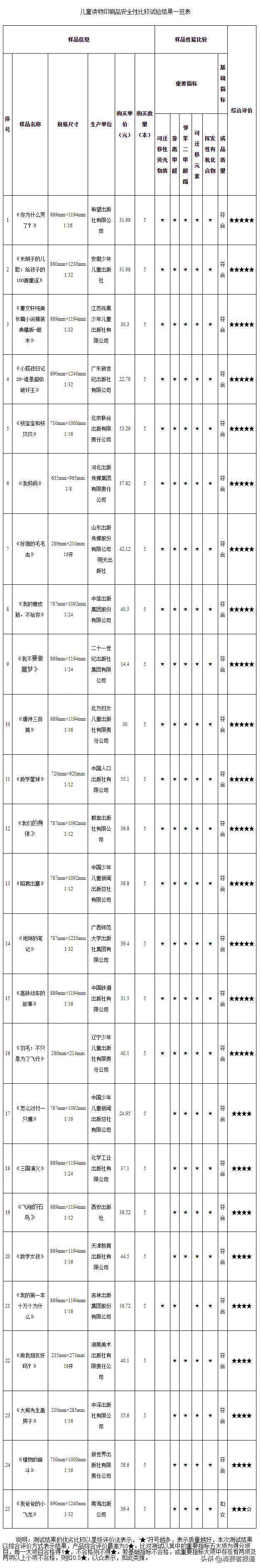 25款儿童读物比较试验2021年3月,广东省消委会、东莞市消委会联合发布儿童读物印刷品安全性比较试验报告。