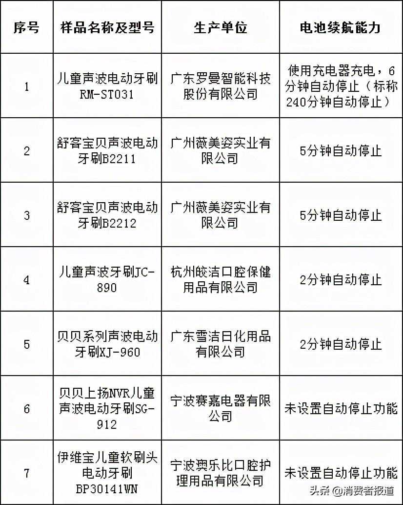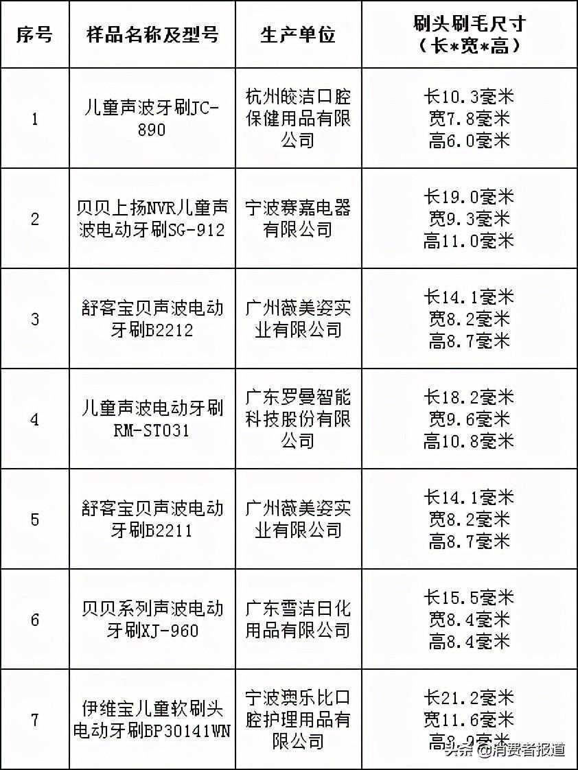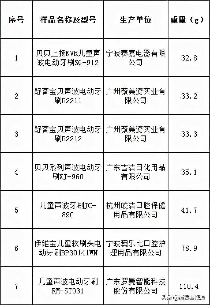 儿童电动牙刷比较试验2020年11月,浙江省消费者权益保护委员会公布了7款儿童电动牙刷比较试验结果。