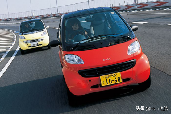 图:第一代Smart(W450)针对日本市场推出了“轻自动车”级别的SmartK型号,采用598cc引擎,这也是唯一的欧洲血统的JDM车型。图中后面那台则是0.7T的标准版,因属于小型自动车而挂上白色车牌。