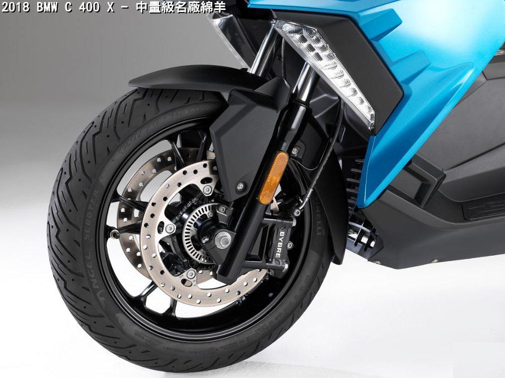 C400X的头尾轮圈直径分别是15寸尾14寸,轮带尺寸是120/70-15和150/70-14。为何尾轮不是15寸直径呢?原因除了让加速力可以更强一点之外,也腾出空间让座位下的Flexcase伸展出来。头尾避震行程为别是110mm和122mm,所以我们应该对C400X的车架和避震反应有极高期望。
