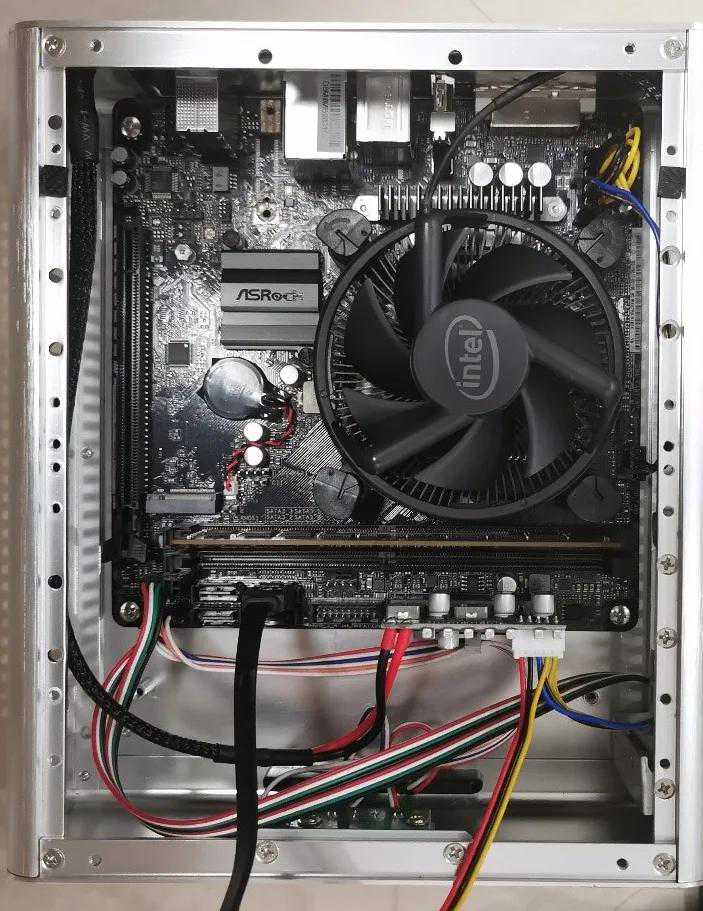 截止目前,机箱及其内部的东西已经全部凑齐了:机箱、CPU及其散热器、内存、主板、DC-ATX模块、硬盘。
