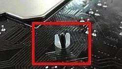 然后把主板反过来,到背面再次确认散热器固定脚是否已经安装到位:
