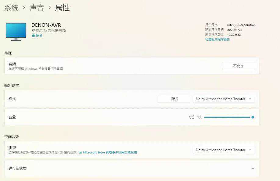 操作系统及硬件驱动都安装好以后,首先看看Intel显示器音频是否按图示那样支持次世代源码输出: