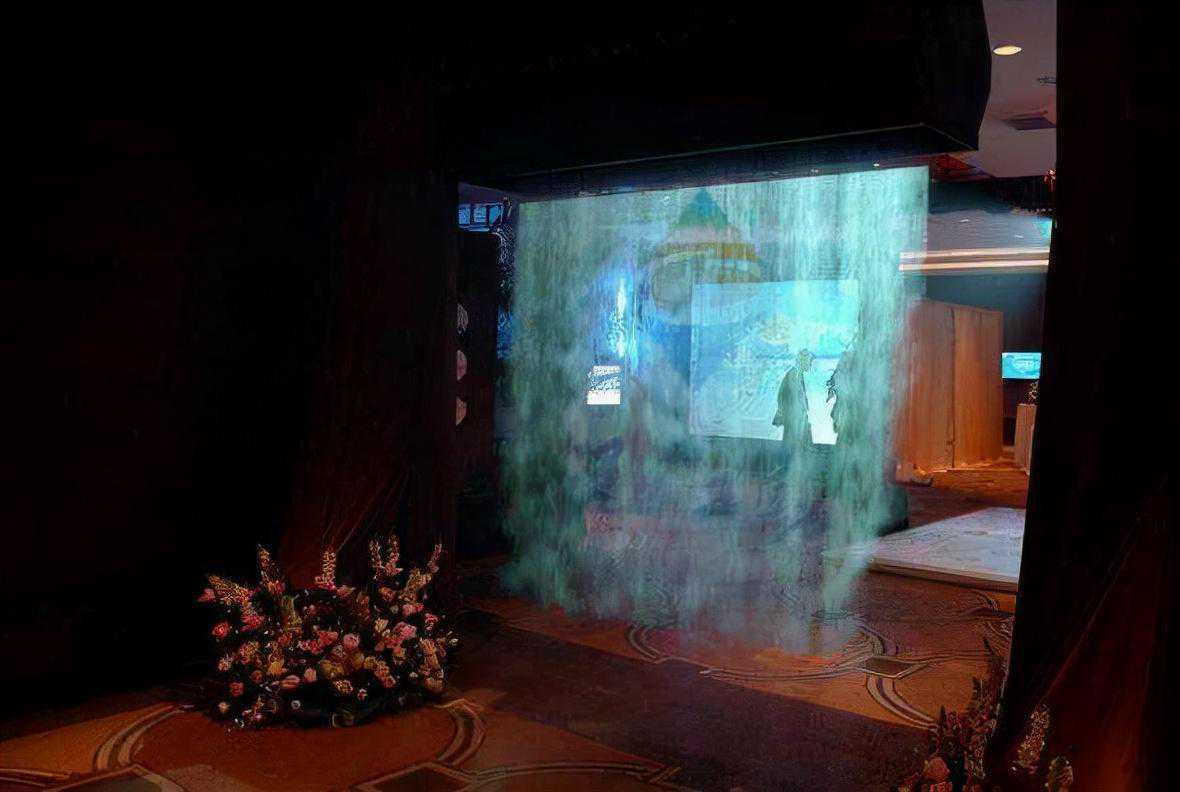 雾屏由雾屏发生器工作产生,水经过过滤,通过电磁阀控制,超声波雾化发生器使纯净水,形成水雾,再利用风机把水雾引出,经过模型,形成雾屏。水雾构成成像介质,能够直接感触到且可以穿越的投影成像系统。雾屏实现的方法类似于投影,但不需要任何屏幕帮助,“雾幕”主要借助空气中存在的微粒,让静态或动态的图象显示在一个很薄的空气层中,人们可以从中穿过而不影响图像的展示。