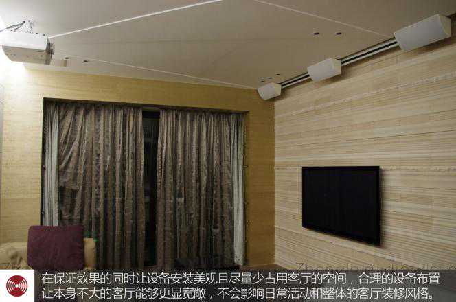 在保证效果的同时让设备安装美观且尽量少占用客厅的空间,合理的设备布置让本身不大的客厅能够更显宽敞,不会影响日常活动和整体的客厅装修风格。