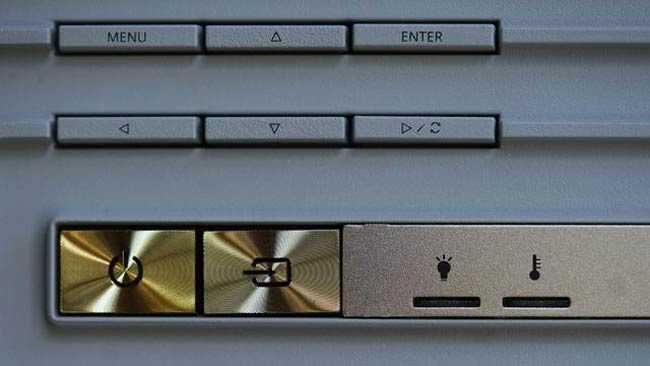 外观设计简约,边缘柔和,金色的镜头边线与贯穿机身正面与两侧的“腰线”简洁华丽,尤为抢眼,让它更显优雅轻盈。它的体积显著要比普通的1080p投影机更大一些,其三围尺寸为498mm×331mm×141mm,重量也达到了7.8Kg左右。