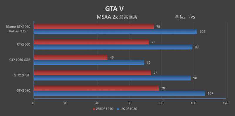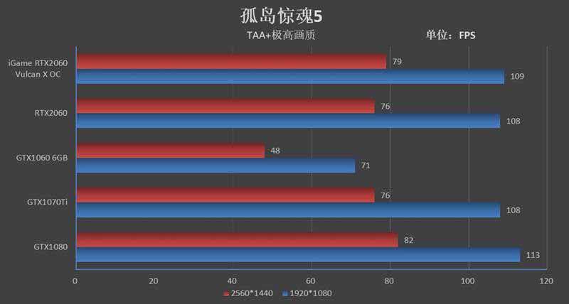 到了2K分辨率,iGameRTX2060VulcanXOC则跑出了79FPS的帧率,领先GTX106031帧,领先GTX1070Ti3帧。