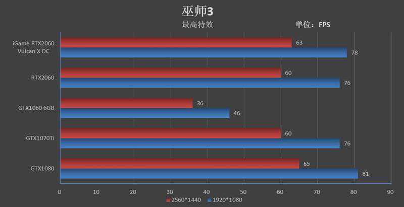 到了2K分辨率,iGameRTX2060VulcanXOC则跑出了63FPS的帧率,领先GTX106025帧,领先GTX1070Ti3帧。