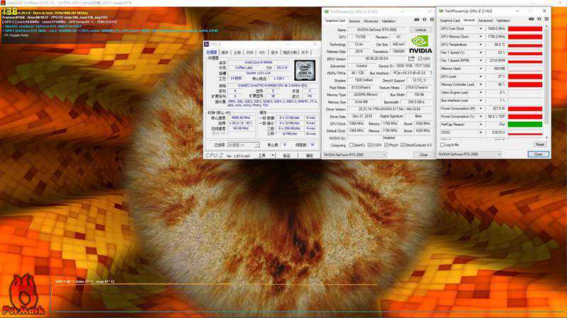 使用Furmark来对iGameRTX2060VulcanXOC进行烤机测试,测试时室温为20度。