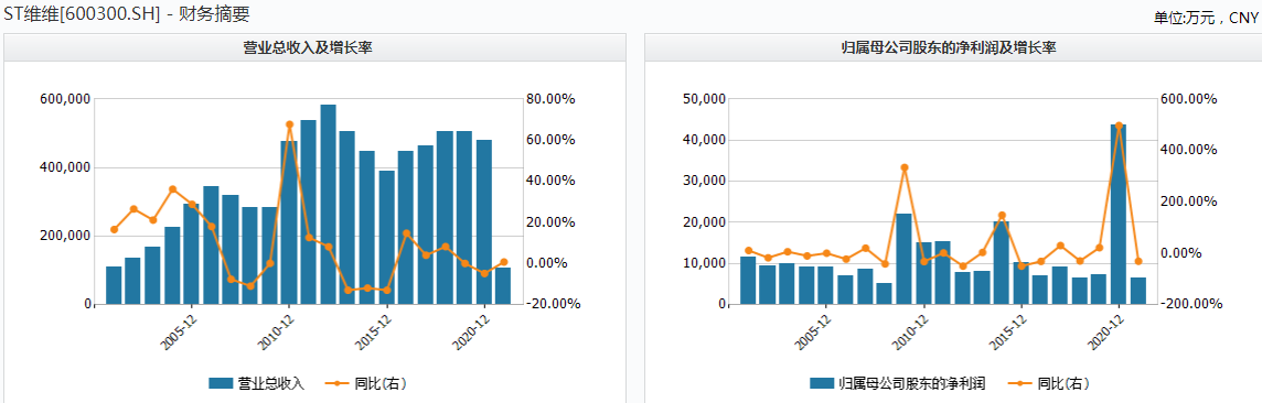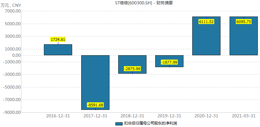 从业绩表现来看,近年来ST维维业绩波动不算小。尽管公司2016年以来持续保持盈利状态,甚至在2020年实现归属于上市公司股东的净利润达4.26亿元,创公司2000年上市以来新高。但扣除非经常性损益后,该公司却于2017年至2019年连续亏损三年,分别为-8591.68万元、-2875.99万元、-1877.99万元;2020年,公司扣非后归母净利润才转正,为6111.52万元。