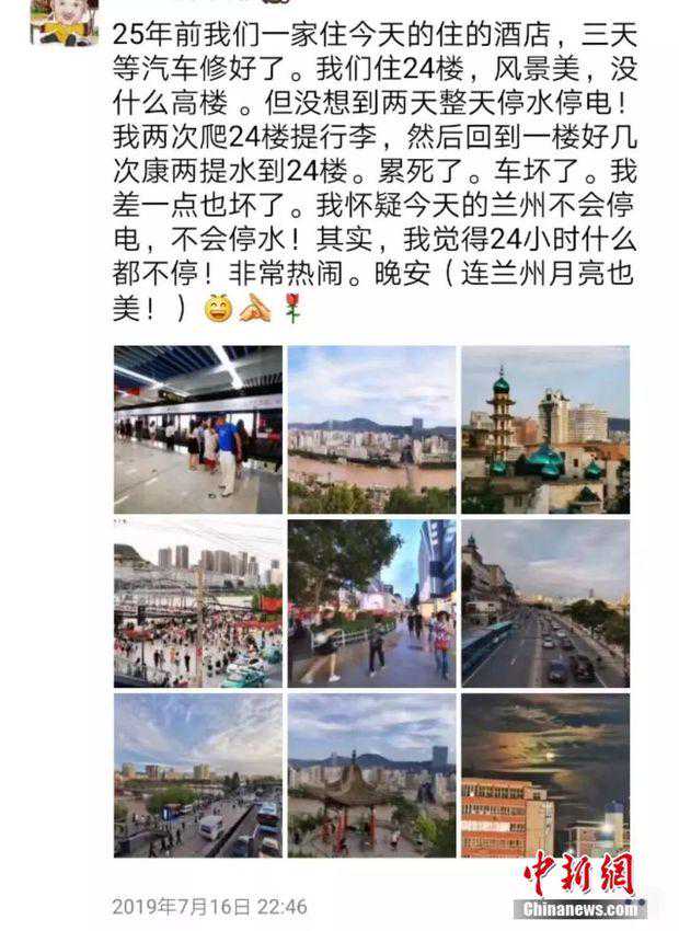 25年前,他到兰州,在兰州最好的宾馆住了三天三夜,但是,其中两天两夜停水停电,他们一家住在24楼,每天回酒店都苦不堪言。