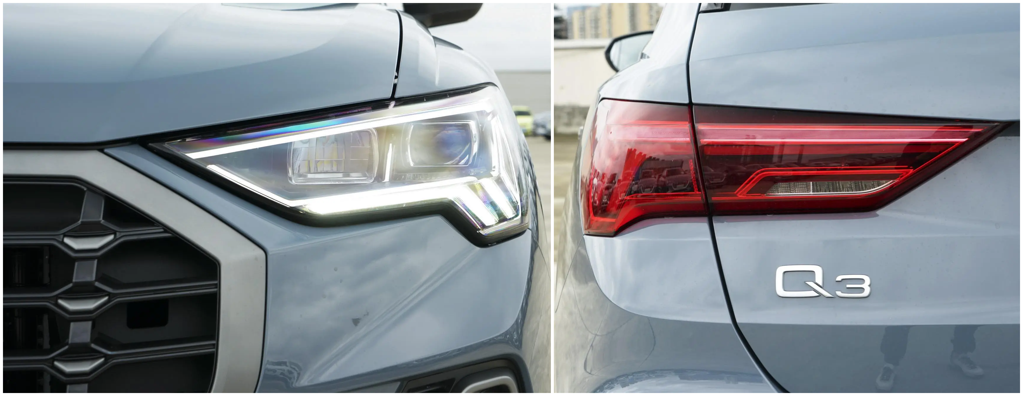 2022款奥迪Q3相比2021款,外形没有变化,依然使用了八边形进气格栅,棱角分明,前脸两侧配备两个战机类型装饰进气口,充满战斗风,全新设计的大灯搭配三条LED灯带,辨识度极高;车侧,后轮轮拱外凸,搭配一条上扬的腰线,充满力量感;车尾,层次感很强,掀背风格得以保留,双边装饰排气口给整车营造了浓浓的运动感,而动感型车型的车尾有一根穿插排气口的横条,视觉横向观感拉满。