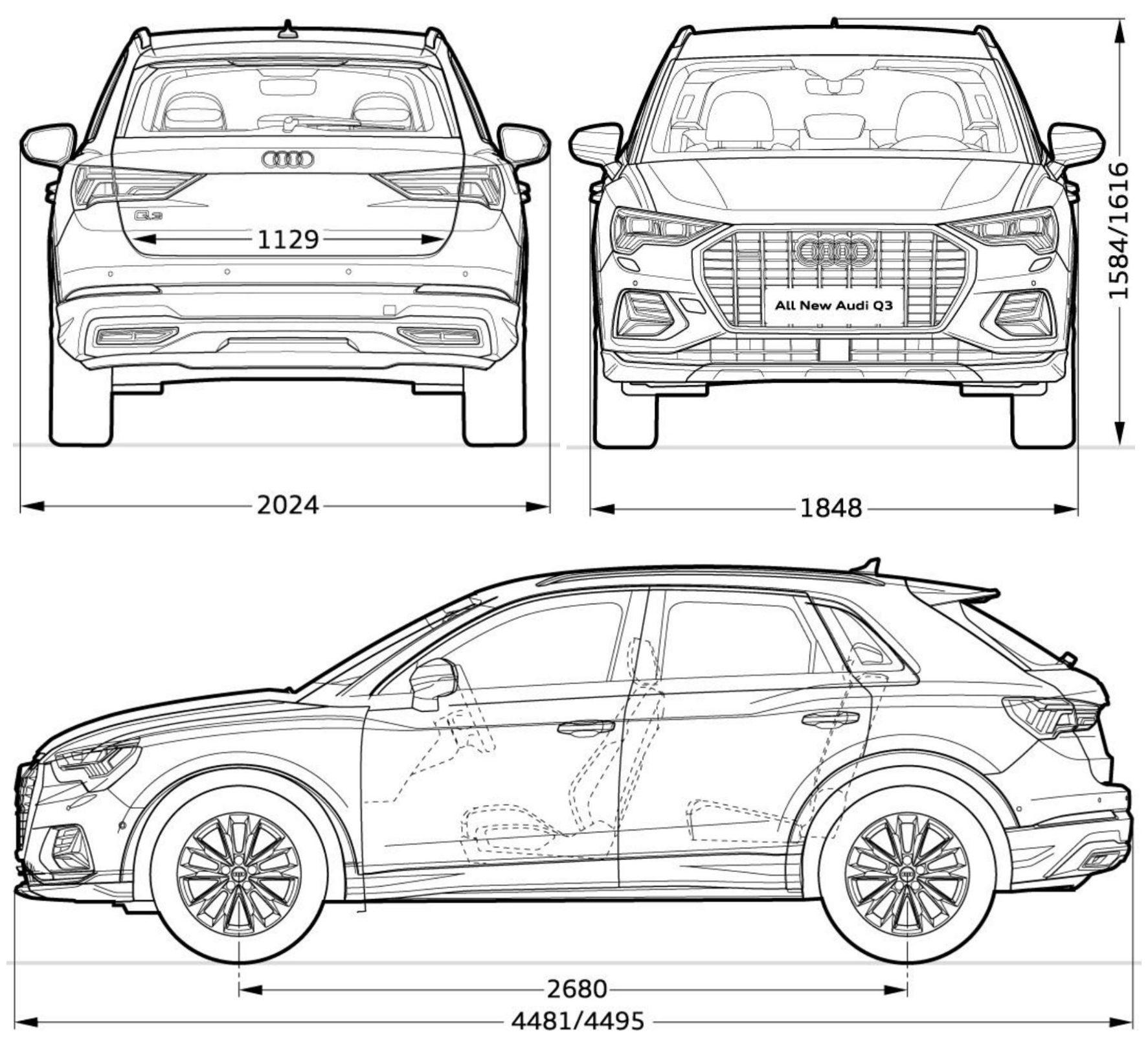车身尺寸方面,35TFSI进取动感型,35TFSI时尚动感型,40TFSI时尚动感型,40TFSIRS套件燃速型和45TFSIquattro时尚动感型的长宽高:4495*1848*1616mm,轴距:2680mm;35TFSI时尚致雅型的长宽高:4481*1848*1616mm,轴距:2680mm。全系最小转弯直径12m,最小离地间隙152mm,行李箱容积450L,油箱容积60L。