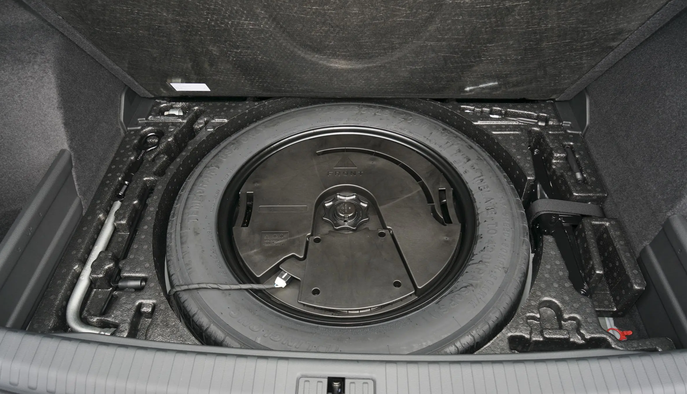 备胎,全系使用非全尺寸备胎,品牌玲珑轮胎,规格T145/85R18103M,置于后备厢垫下面。