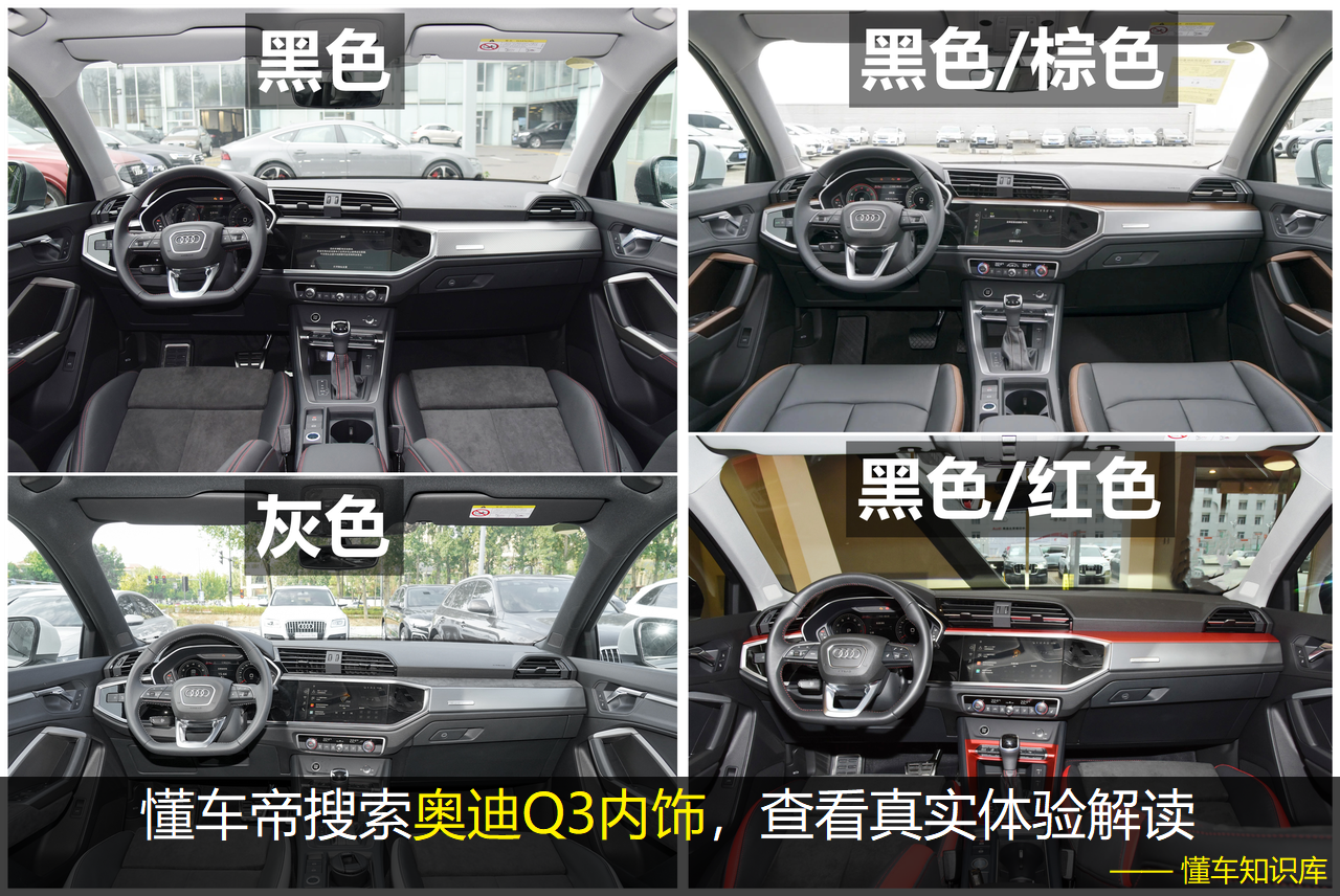 内饰颜色,35TFSI进取动感型和35TFSI时尚动感型可选黑色和灰色内饰;35TFSI时尚致雅型可选黑色,灰色,黑色/棕色和黑色/栗棕色内饰;40TFSI时尚动感型和45TFSIquattro时尚动感型可选黑色,灰色和黑色/红色内饰;40TFSIRS套件燃速型可选黑色内饰。
