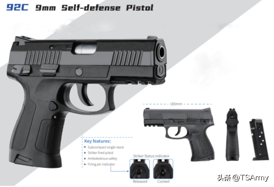 92C型是21世纪初期根据92式半自动手枪的基础,所设计的一款紧凑型自卫手枪,主要针对海外出口,该枪发射的是9×19毫米帕拉贝鲁姆手枪弹,弹匣容量为7发,92C型不仅体型小巧,多个部位还采用塑料组件,具有很强的人机功效。