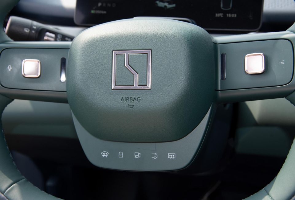 同时也因为有这块灵活的屏幕,极氪X的大部分功能都被整合进了车机系统中,更少的物理按键自然看上去就会更加简约。但一些常用功能,极氪X依然是保留了触控按键设计,只是将它放在了方向盘的喇叭下方,便于操作。