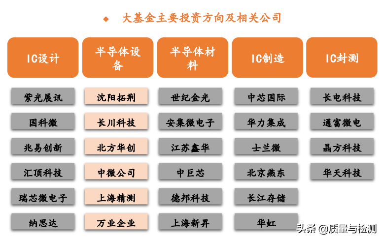 2014年工信部提出设立国家产业投资基金(大基金),通过股权入股形式进行投资,不干预原有公司的正常经营,重点支持集成电路制造环节,兼顾设计、封装测试、装备、材料等环节,推动相关企业提升产能以及实行兼并重组,提升公司竞争力。