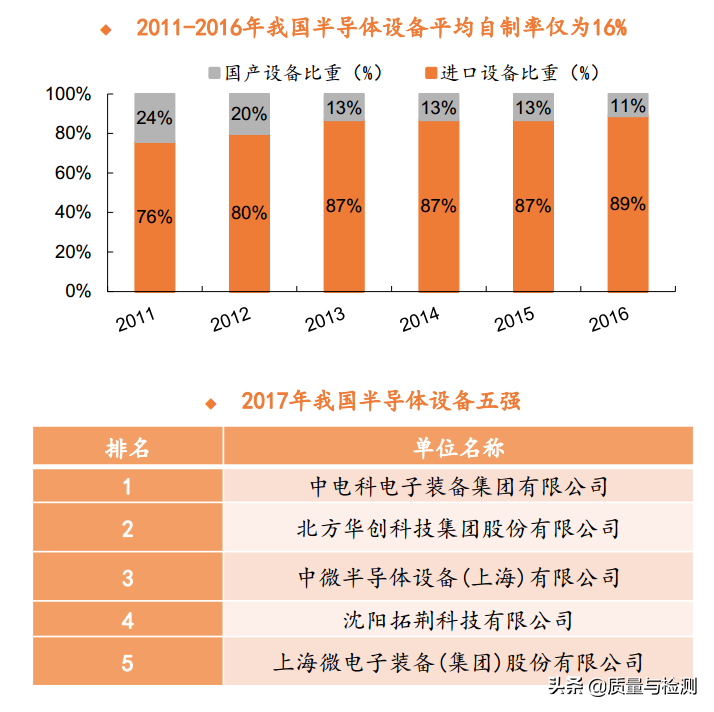 2011-2016年,国内设备企业平均自制率仅为16%,国产设备自制率还有较大提升空间。我国计划到“十三五”末期,国产集成电路设备在国内芯片制造厂的替代率至少达到30%,全球半导体产能大转移为国内集成电路设备企业带来重要历史机遇。