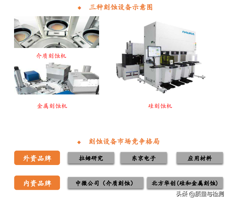 国内企业中,中微公司的介质蚀领机全球领先,已经进入台积电最新工艺产线。北方华创的硅刻蚀机和金属刻蚀机在国内领先。