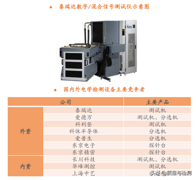国内龙头长川科技已经布局测试机和分选机市场,积极研发探针台。华峰测控主要产品为测试机,是国内最大的半导体测试机供应商。上海中艺主要产品为分选机。
