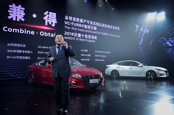 第七代天籁ALTIMA搭载全球首款量产可变压缩比涡轮增压发动机2.0LVC-TURBO智控引擎,采用颠覆传统发动机的曲柄连杆结构,独创多连杆系统,实现发动机压缩比由8:1(高性能)-14:1(高效能)之间的智能无级切换,峰值扭矩380N·m,最大功率185kW,具备同级最强劲的动力输出,并集成双燃烧循环、双燃油喷射、单涡流涡轮增压技术、镜面熔射缸孔技术等8大前瞻性制造技术于一身,在满足更加严苛排放和油耗标准的同时提供澎湃动力,真正实现内燃机领域里程碑式革命。日前,VC-TURBO智控引擎荣获2019沃德十佳发动机。