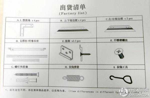 包装带了2种型号的弹簧我也是蒙圈,还问卖家是不是给我发错了,这也不一样大呀,经过反复沟通确认,一个是拉幕布一个是拉窄边框,半信半疑的情况下开始了幕布的组装苦逼之旅。