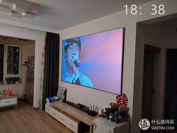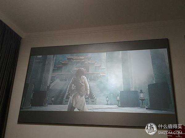 夜间的话亮度会有些许损失但是对比度以及色彩都相比白墙好很多,而且这么大的幕布,超窄边框给人的感觉就很酷,很多邻居以及朋友来窜门都表示很心动。