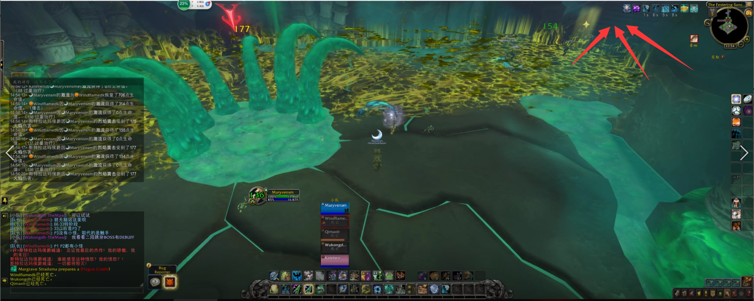 整个副本遍布绿色的水池,踩进去以后,叠一个10秒的DOT[凝结瘟疫]:每秒受到940点瘟疫伤害。这个DOT每2秒叠一层,最多可以叠到10层,森林很担忧的是,下个版本重伤周,这个本简直是劝退治疗。