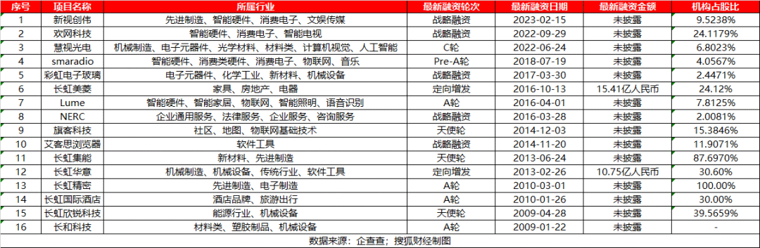 而且,早在2006年,赵勇带领下的长虹即以成立最早的CVC长虹创投,围绕智能制造、新能源、房地产等进行投资。