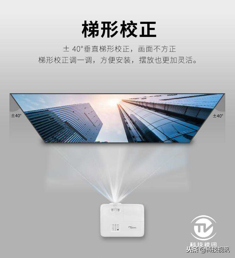 作为奥图码HD27H投影机特色之一,在投影画面出现不方正,如上宽下窄等情况,奥图码HD27H投影机具有正负40度的垂直梯形校正功能,投影机本身的安装与位置的摆放更换也将更加轻松。