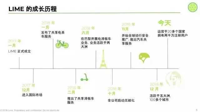 但团队顶住压力,转口称测试。“最后发现这是一个更大的市场,更不一样的世界。”2018年1月,Lime推出共享电单车,2月推出如今的主要产品共享电动滑板车。现在,90%以上是电动产品,且以滑板为主。
