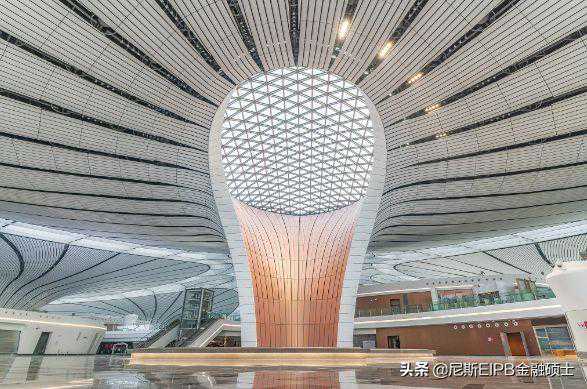 以航站楼中心位置为原点,半径90米的范围,都是没有柱子的高大空间,核心区屋顶屋盖钢结构投影面积18万平方米,相当于25个足球场的面积,可以完整地装下整个“水立方”。