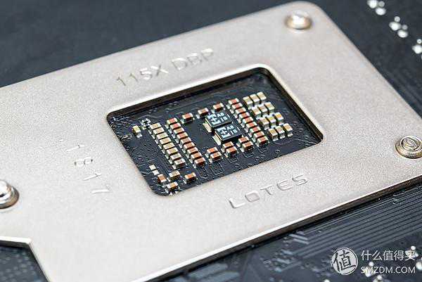 CPU底座背面可以看到一组滤波电容,华擎还额外添加了两个聚合物电容,用来提高主板电流的稳定性。