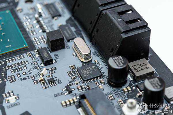 主板上还有1颗ASM1184芯片,这是用于转接PCI-E通道,将1条桥接为4条。总体来说,华擎与技嘉华硕的设计思路颇有些不同,华硕技嘉更倾向于利用大量的SWITCH切换和降速来解决芯片组通道不足的问题。而华擎更倾向于采用更多的HUB芯片来转接,尽可能减少PCI-E带宽的损失。不过代价也很显而易见,更多的芯片降低了主板的集成度。