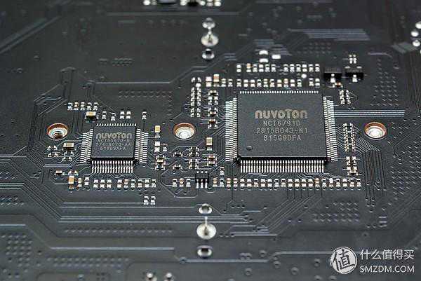 主板上还有一颗nuvoTonNCT6791D硬件监控芯片和一颗nuvoTonNCT5567DSuperIO芯片。集成度还是低了一些。