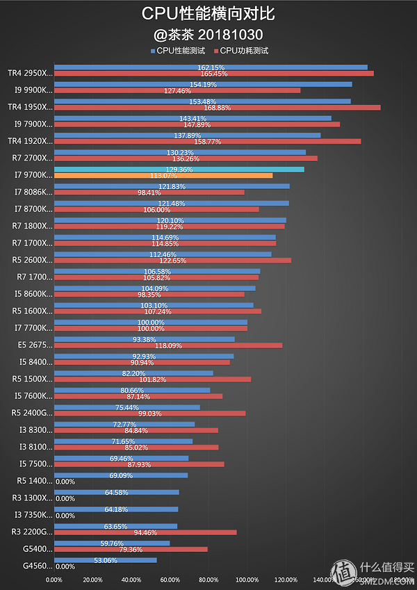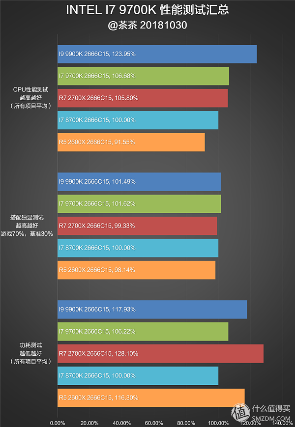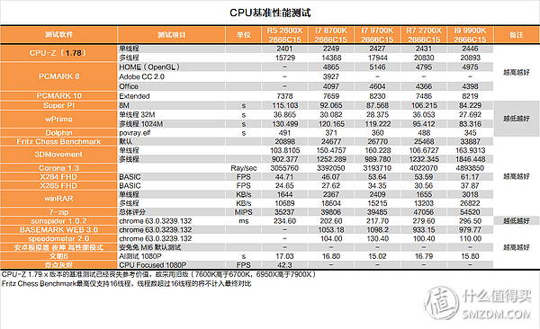 CPU综合统计来说I79700K与R72700X基本是一个水平上,与I99900K会有比较明显的差距。