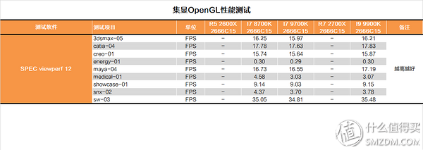 集显OpenGL基准测试,专业软件部分以为基准测试。