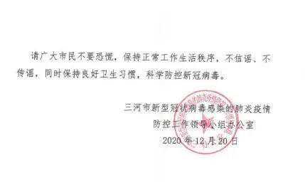 河北省三河市新型冠状病毒感染的肺炎疫情防控工作领导小组办公室发布公告,通报北京确诊病例的密接者次密接情况,2人2次核酸检测均为阴性,健康状况良好。