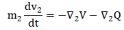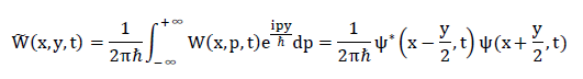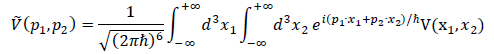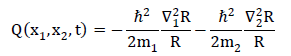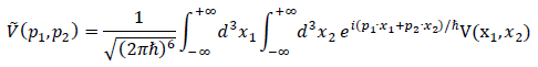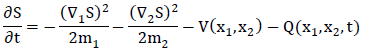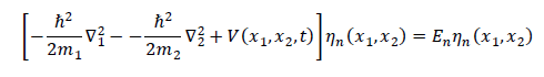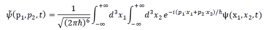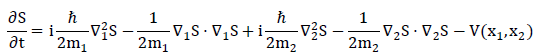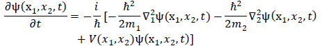 其中粒子的质量分别为m1,和m2,而V(x1,x2)是经典势能函数。等价的,在动量空间波函数随时间的改变为