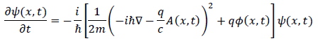 波函数在大多数量子力学讨论中都扮演着中心的角色,以至于我们很容易陷入一种思维模式中,即认为波函数不再是一个数学工具,而是一个物理实体。但考虑一下这个问题,或许我们就不会再这么认为了。假设一个带电粒子(电荷q)在一个电场中运动,电场可以由一个标量势ϕ(x,t)和矢量势A(x,t)描述。那么位形空间的薛定谔方程为