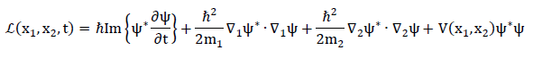 ,但其随时间演化的规则不再是薛定谔方程。让我们再一次考虑一个非相对论的忽略自旋的两粒子体系。在所有可能的归一化波函数,正确的那个波函数必需满足使时间和共形空间的积分作用量达到极小值: