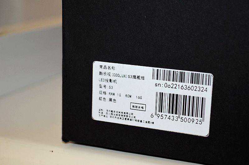 酷乐视S3智能投影采用黑色硬质纸质包装盒子,简约设计风格。