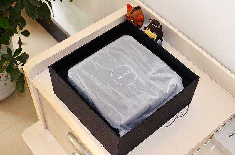 之前虽然也试玩过多款智能投影类产品,但是看到酷乐视S3智能投影的时候,还是被它的个头给小小的震撼了。酷乐视S3智能投影的三围尺寸为225*225*53mm,重量为2.1kg。虽然个头稍微有点大,但是重量方面控制的很好,携带不觉得特别重。
