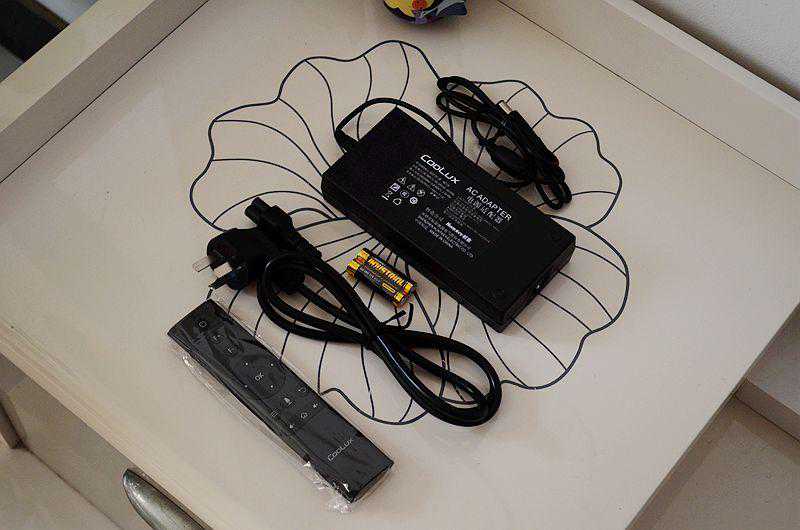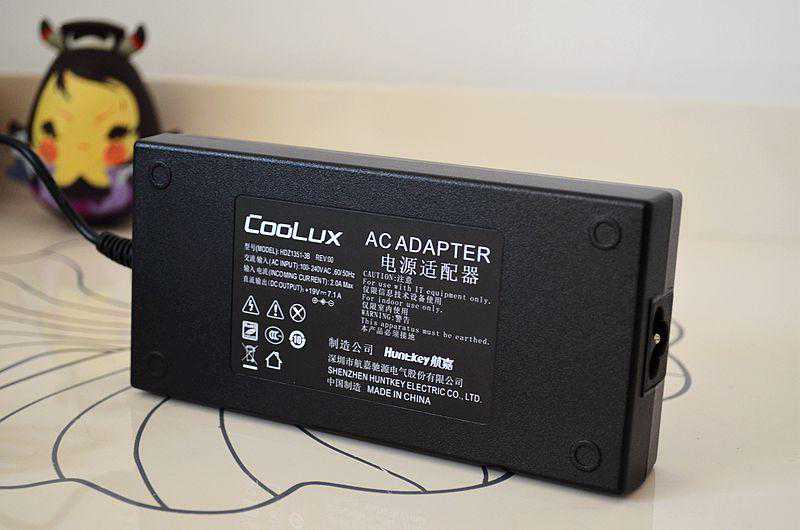 配件里面有电源适配器、数据线和遥控器,这个电源适配器的个头确实比较大,航嘉品牌的,上面蓝色的指示灯也非常漂亮。