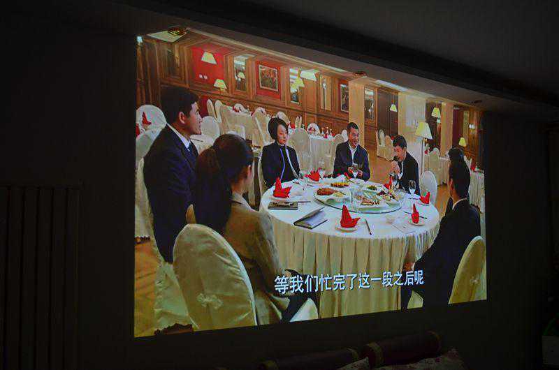 拍照那天刚好是下雨天,光线不是特别强烈,从画面的亮度和对比度来看,和晚上的效果相比,效果差点,但是还是可以观看的。与我之前体验过的多款投影产品相比,应该说已经上了新的台阶。