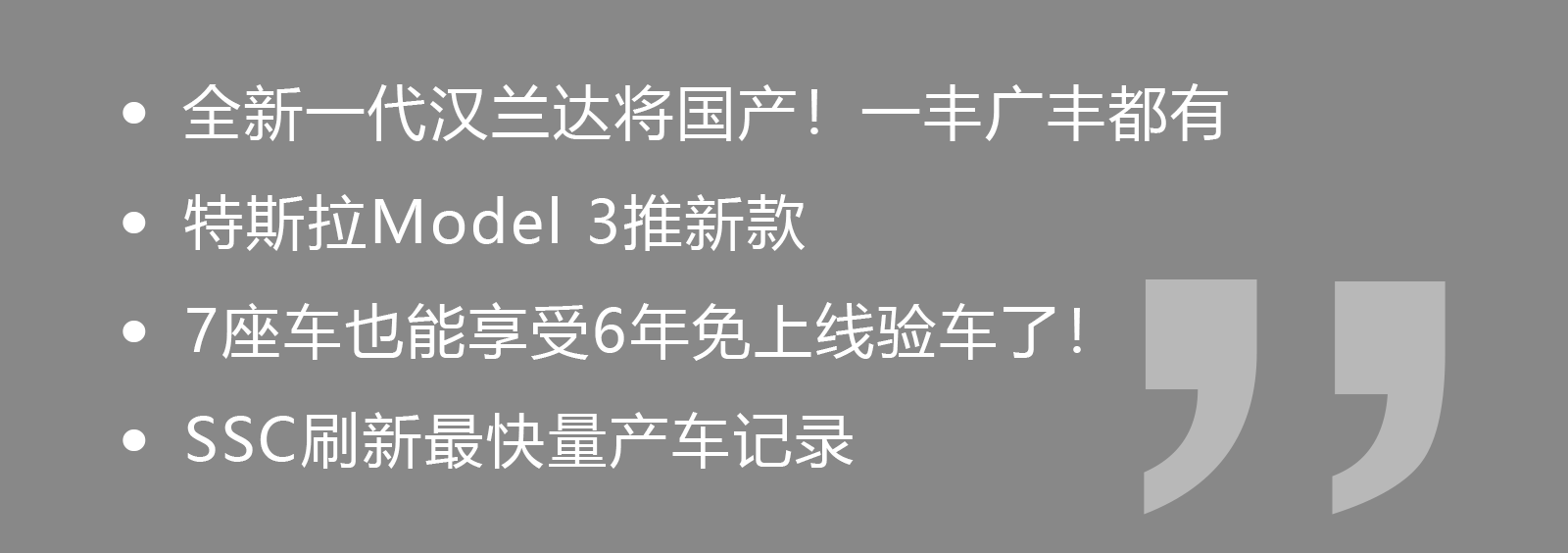 从2020年11月20日起,7至9座非营运小微型客车(面包车除外)也将纳入6年免检范围,这也就意味着,如果你购买了一辆7座的汉兰达、途昂等车型,在新车的6年之内也可以免上线验车了!