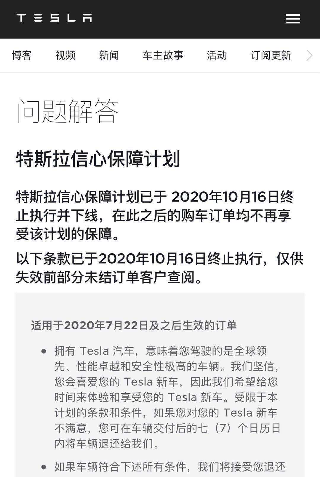 虽然国产Model3没有改款计划,但是热闹事可是一点都不少!这不,10月16日特斯拉就在中国市场终止了信心保障计划,这意味着自2020年10月16日起订购特斯拉车型的用户将不再享有购车后七天内无理由退车的服务。当年这个计划推出时,特斯拉还没有打开中国市场,希望靠这种方式获得消费者的信任。如今Model3月销量都破1万了,自然也不需要有什么额外的保障服务了。