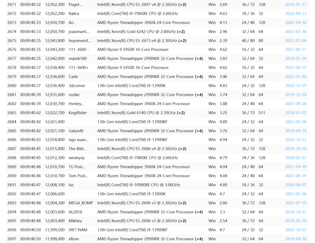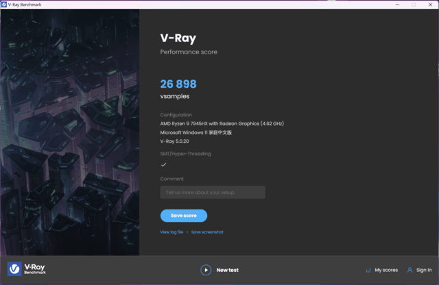 最后是V-ray,测试软件的版本为5.0.20,最终成绩为26898。对比官方的数据库,这个成绩甚至超过了i9-13900K,还是比较夸张的。