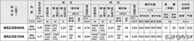 三菱电机RS系列,MSZ-RS09VA为1匹,MSZ-RS12VA为1.5匹